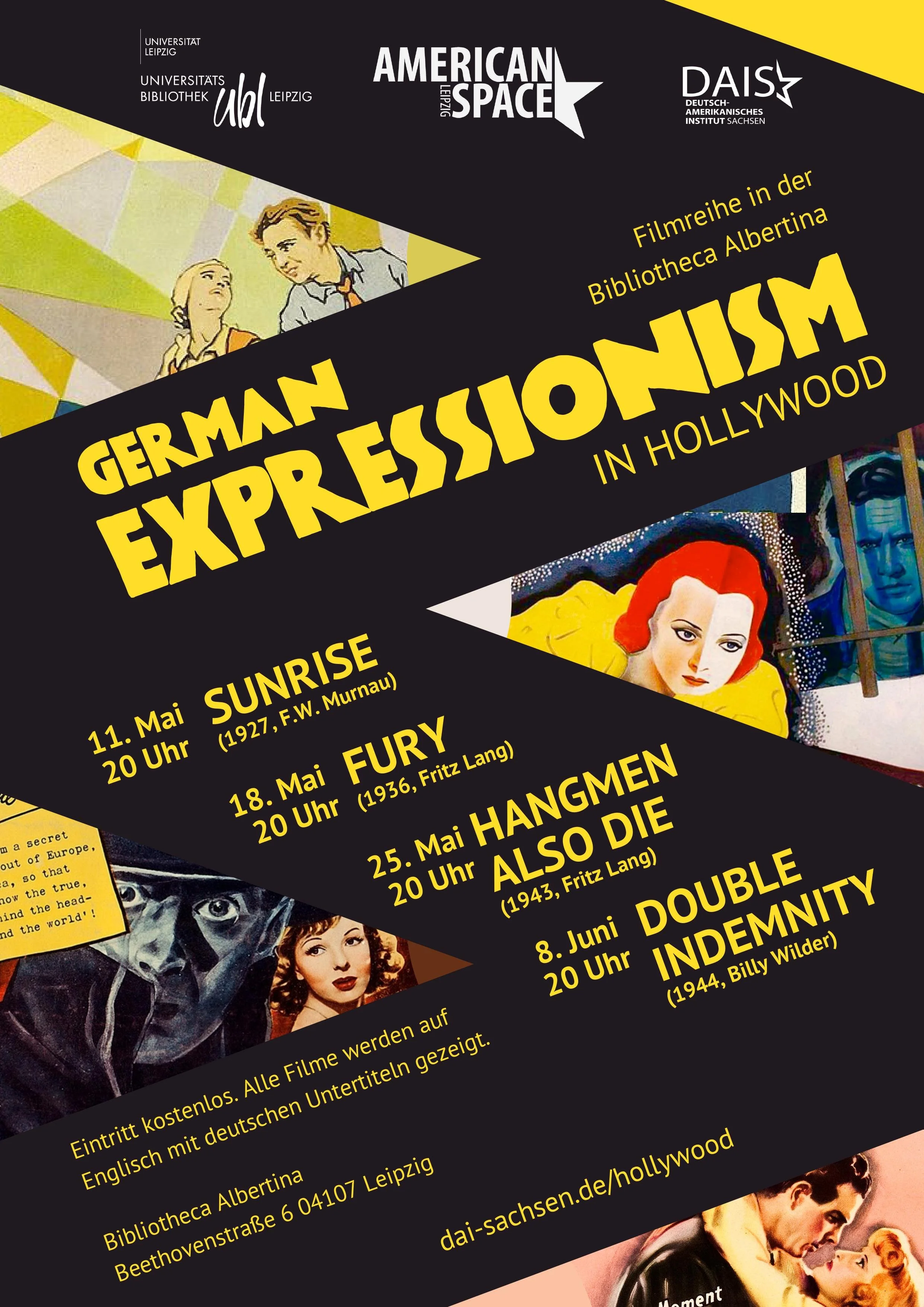 Filmreihe des American Space Leipzig der Universitätsbibliothek Leipzig mit dem DAI Sachsen und Teil des der Filmreihe »German Expressionism in Hollywood«.