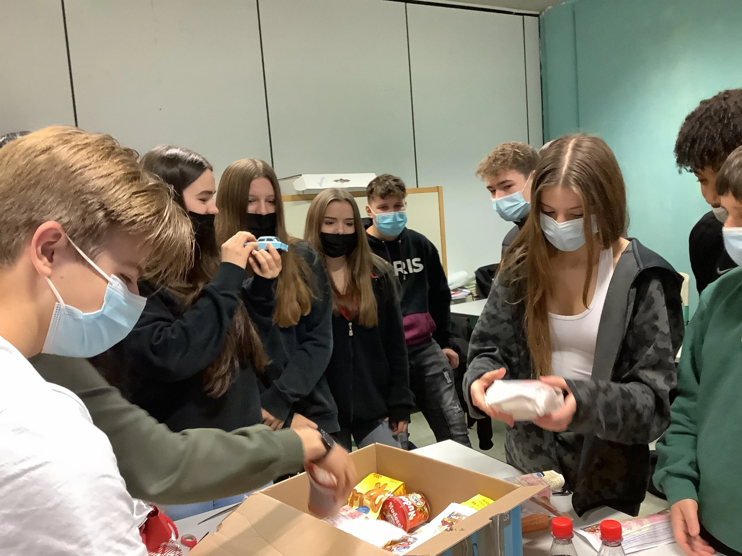 Am 17. Dezember besuchten Friedrich Opitz und Hannah Vossen die Rahn Education Freie Oberschule in Leipzig, um das Auspacken des West-Pakets aus Eschweiler zu begleiten.